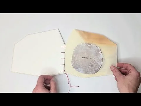 Bad Roommate, Encaustic transfer and microbial cellulose, 6” x 7,” 2026.